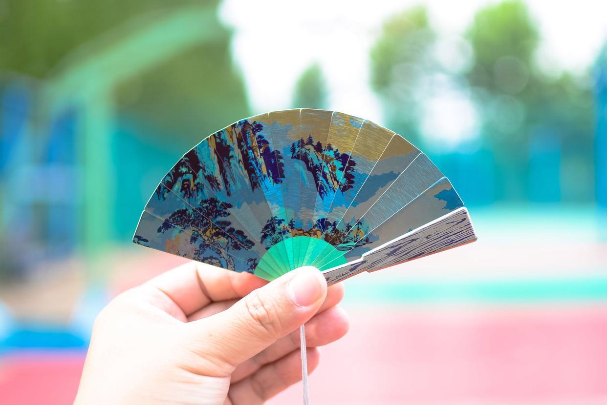 The big bone of the Feigo all-titanium alloy mini painted fan is a copper design with colorful patterns.