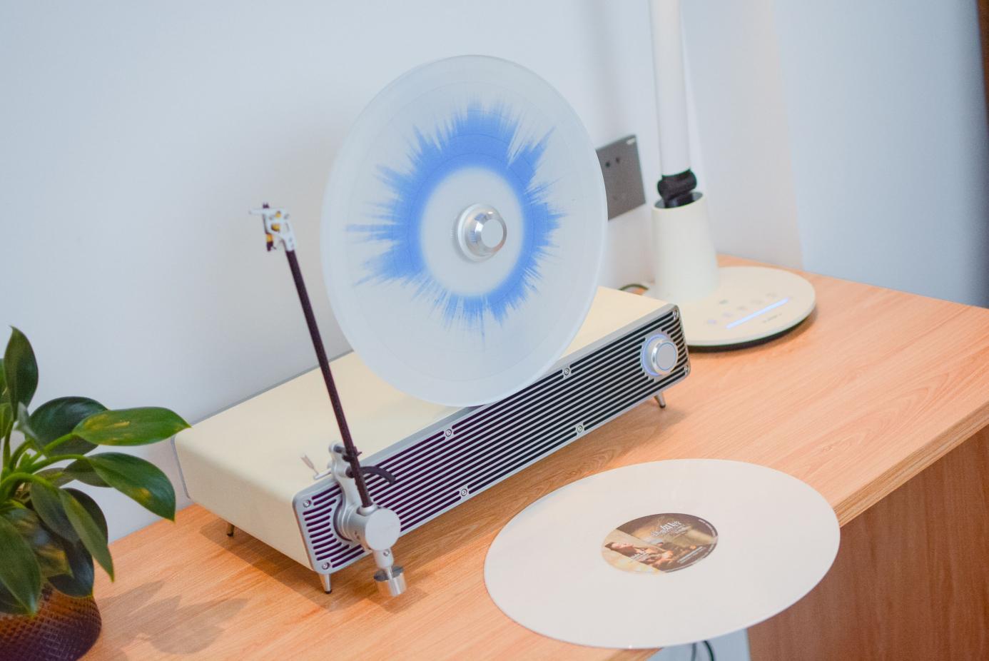 Let's take a look first, this is the scene of playing a record, Cool Geek vinyl record player has a variety of colors to choose from, among which my ivory white with white vinyl record, in addition to a strong artistic atmosphere, also has a sense of fashion.