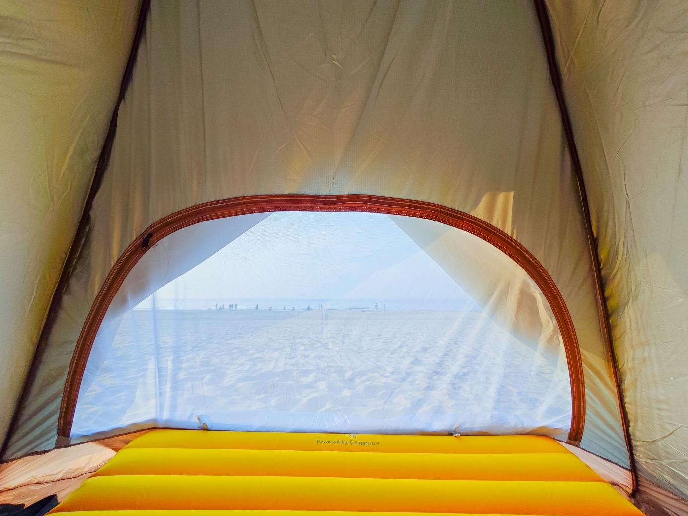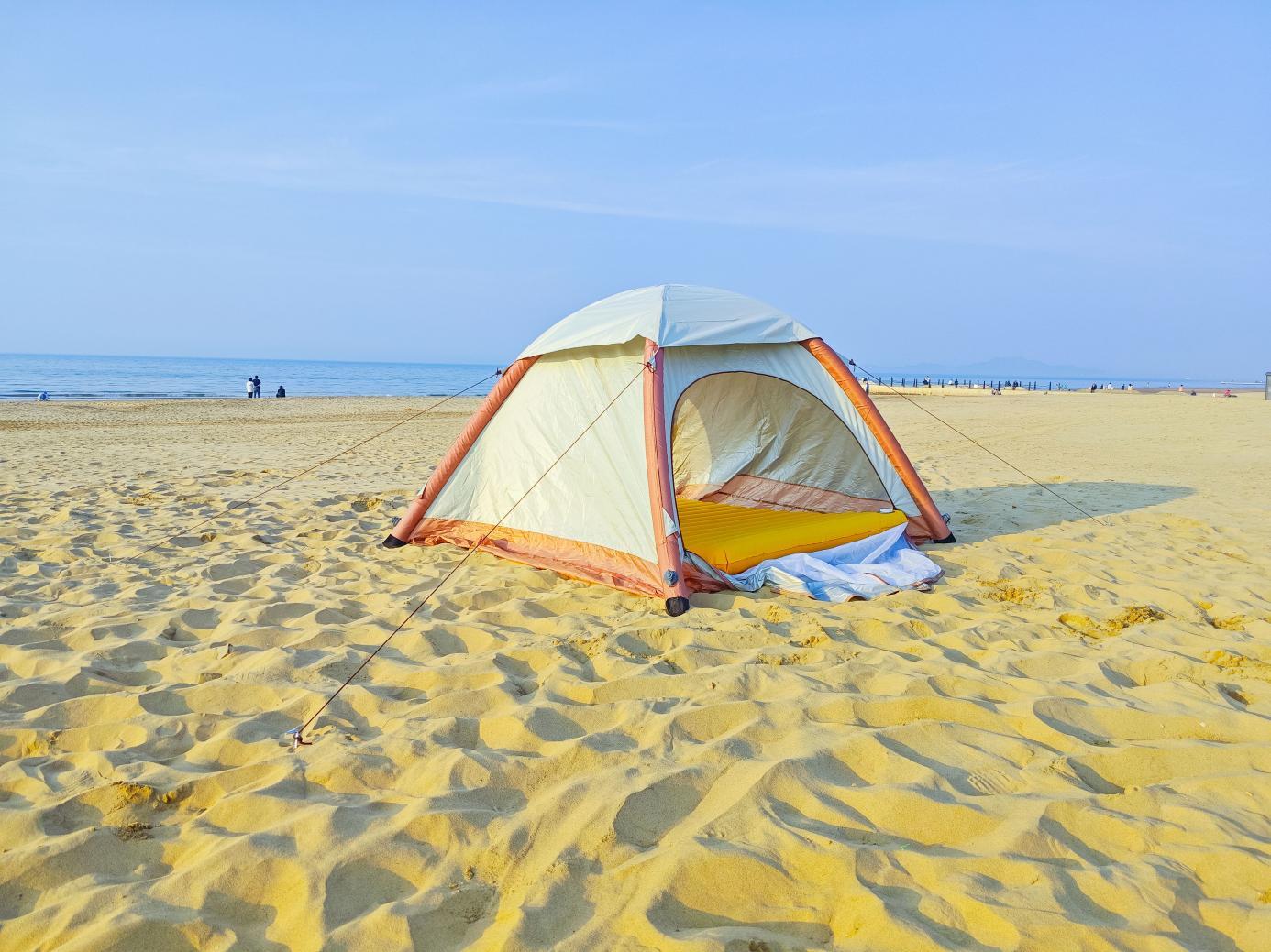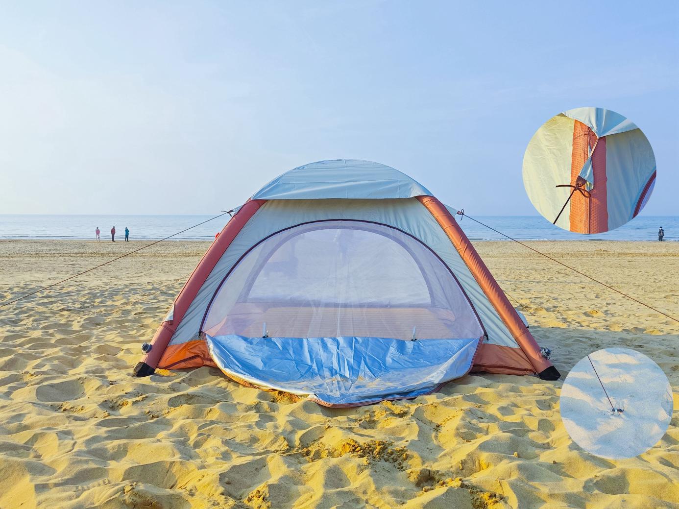 (2) The length of the ground pegs is long enough to be firmly fixed on the beach; When used that day, the sea breeze intensified a lot in the evening, and the tent was not affected at all;