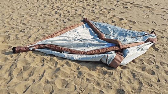 The overall color is off-white + brown, the four air columns are very strong, and when the sea breeze is not too strong, there is actually no need for a wind rope at all.