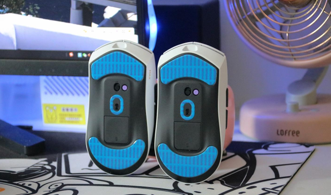 Let's take a look at the back design of these two mice, it is still a more common design of Rapoo mice, Teflon foot pad design, in addition, there is a power on key and DIY custom buttons and hidden magnetic absorption storage, in order to fill the game attributes, this time the foot pad uses a new "ice" e-sports foot sticker design.