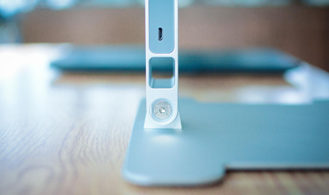 ORICO docking station stand, the first feeling is that it is almost entirely made of aluminum alloy, and the overall is very thick, on the one hand, the load-bearing is stronger, on the other hand, the rotating shaft designed by the bracket is relatively tight, and it takes force to open the rotation, and the thick plate does not feel cut. The load-bearing plate is designed with two large-sized heat dissipation holes, as well as 6 thick silicone pads (4 on the front and 2 on the lower two trays), which can effectively protect the D-side of the notebook from scratches.